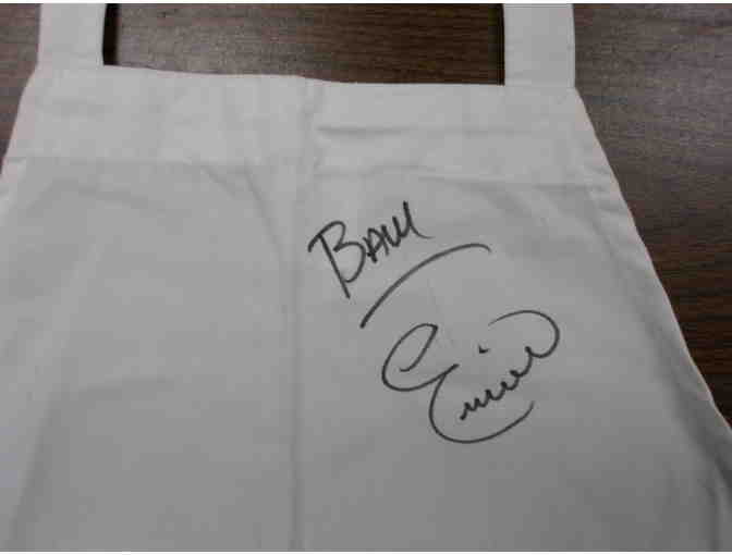 This unused full length white chef's apron has been autographed by Emeril, start of TV and the owner of Emeril's Restaurant. He wrote his signature quote - BAM - followed by his signature.