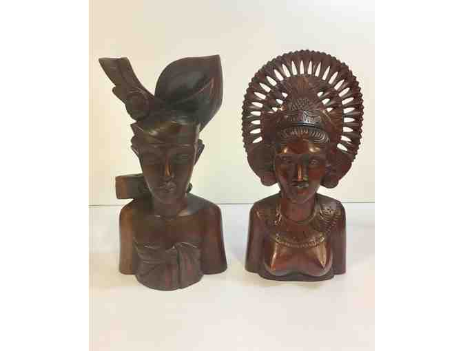 VINTAGE WOOD HAND CARVED BUST SCULPTURES