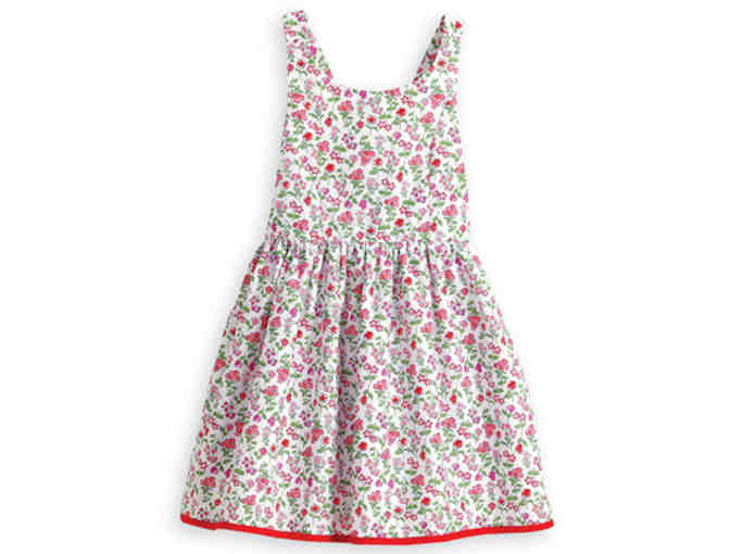 Beautiful gathering and a bow in the back help to make this dress truly special. Fully lined. In Garnet Floral. Cotton blend; machine wash.