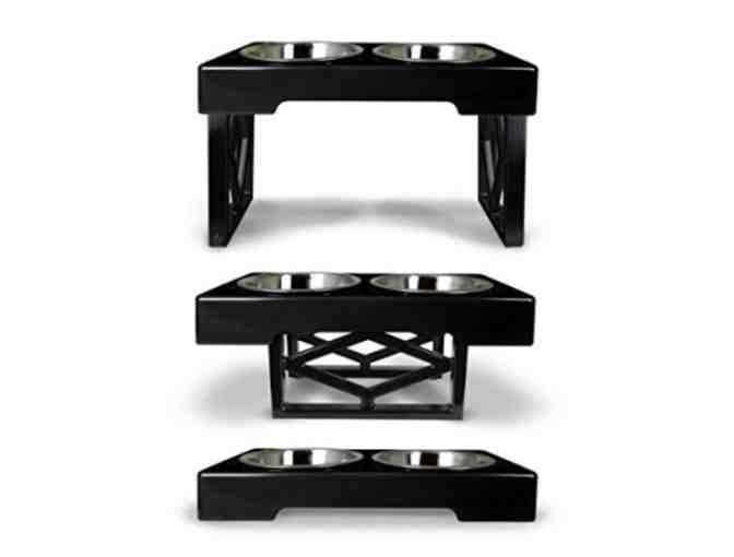 Pet Zone® Designer Diner™ Adjustable Dog Feeder.Height adjusts with your dog: 2.75" - 8" - 12".Hygienic and easy to clean.Collapsible for easystorage.Stylish elevated dining for your dog.Your dog will be eating in chic comfort with the Designer Diner™, designed to close the distance between your dog and his food and water, thereby reducing strain on his neck and joints.Elevated feeding also encourages effective digestion and may reduce instances of gastrointestinal problems such as bloat.The feeder accommodates small, medium, and large dogs by adjusting from 2.75" to 8" to 12" tall.It grows with your dog from puppyhood to his adult years!