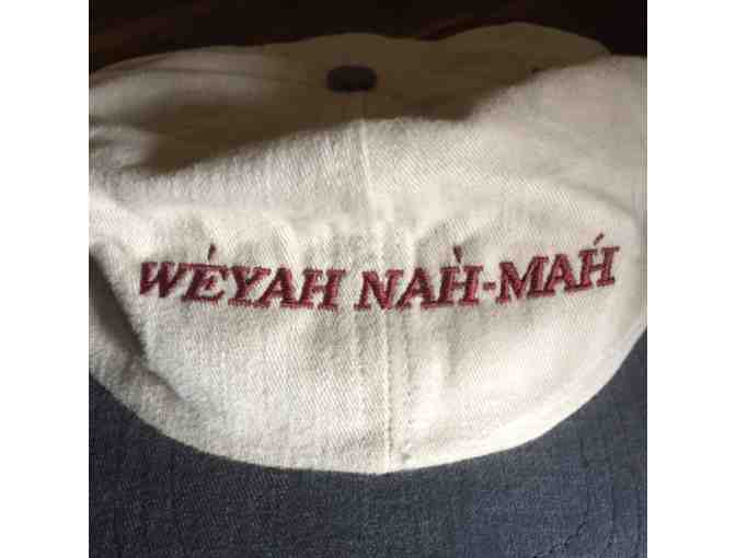 Cap is khaki with a blue-grey "lid" and writing, "Weyah Nah-Mah" is in a deep red. This film is based on a true story that occurred in the mid 1800s. Please see pictures! Janine Turner starred in this film!