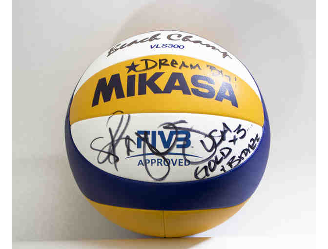 USA Olympian, Kerri Walsh Jennings, signed AVP volleyball and Team USA athletic shirt in a size small. Jennings is a 3 time gold medal and 1 time bronze Olympic winner for Beach Volleyball.