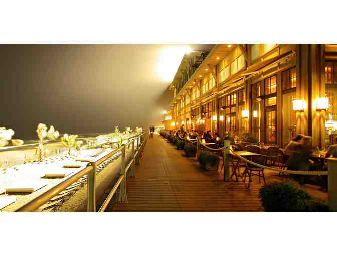 During the day bask in the sun pouring in from the floor to ceiling windows while relishing in the personal attention of the servers catering to every need. After the sun goes down the fireplace is a focal point of a lavish lounge at one end of the 5000-square foot space that keeps patrons satisfied in its warm glow. The floodlights turn on in the evening illuminating the surf and sand creating an environment of relaxation.