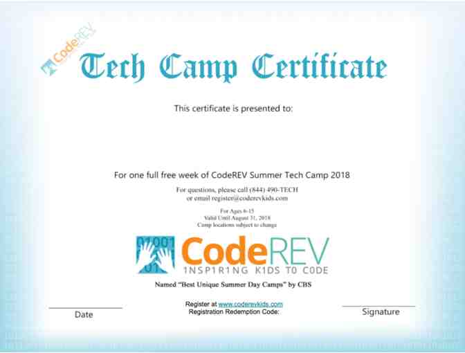 Must be used at available CodeREV 2018 Summer Camp Locations. Locations are subject to change.