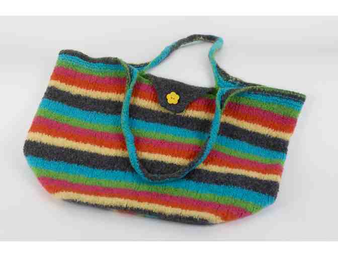 In today's world we know the importance of the phrase: reduce, reuse, recycle. In keeping with that effort, this beautiful, sturdy, 100% felted wool bag will be your new best friend!