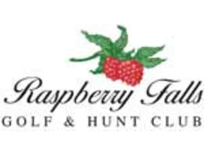 An 18-hole round of golf for four at Raspberry Falls Golf & Hunt Club in Leesburg, VA. Proper golf attire required. Additional cart rental required. Call Pro Shop at 703-779-2555 to schedule tee time. Valid Monday-Thursday, excluding Holidays. Expires April 30, 2019. URL: http://www.raspberryfalls.com/