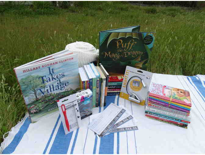 Your little book lover will find plenty to love here! Includes: $195 in Booksmith gift certificates; cozy blanket; booklight; bookmark pen; journal; and an assortment of books.