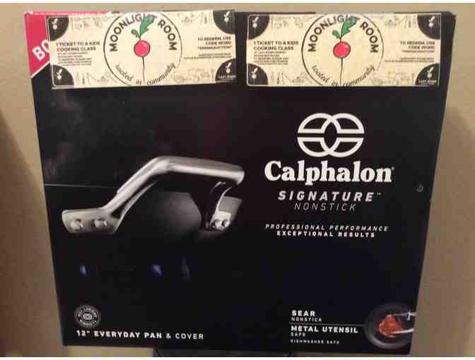 Discover the exceptional results from professional performance with the Calphalon Signature Nonstick 12-Inch Everyday Pan and Lid. Made of a durable Sear nonstick surface, this pan can sear, brown, and sauté while standing up to metal utensils.