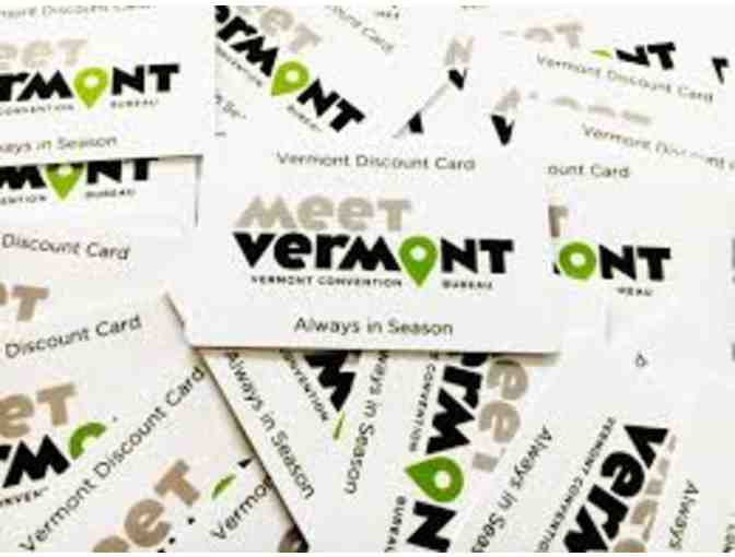 A pair of "Meet Vermont" Vermont Discount Cards offering select discounts at VT businesses! No expiration date!
