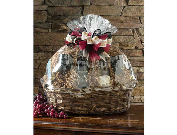 A basket fit for a queen! Includes black bean salsa, Childress Vineyards’ Smokey Mountain Special jam, Childress Vineyards’ chocolates, Childress Vineyards’ 4 oz. salted peanuts, Salem Baking cheese straws and cookies, and 34 Degree crackers. Also consists of Childress Vineyards’ glasses, Chardonnay and Merlot wine.