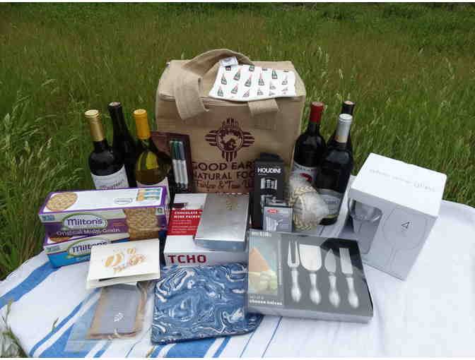 This collection of wine country essentials is a foodie's dream! Includes: $200 Bouchon gift card; assorted wines and prosecco; acrylic wine glasses; TCHO chocolate & wine pairing kit; cheese knives; coasters; ceramic trivet; crackers; chocolates; accessories and a cooler bag.