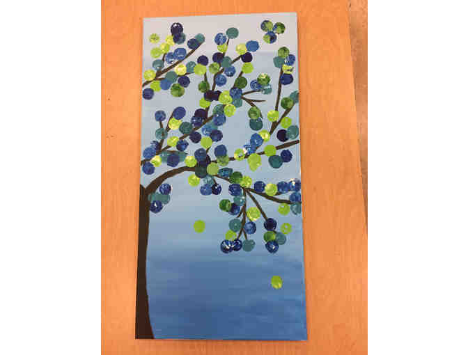 Each of the 12"" x 24"" canvas panels is beautifully painted with either a warm or a cool color palette. Kinder-artists stamped the leaves on the Friendship Tree with acrylics using wine corks. Each of these panels can stand alone to add a splash of color to any room decor.
