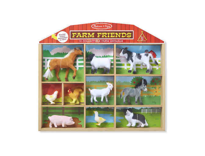 Cultivate endless hours of imaginative playtime with these adorable and realistically detailed farm animals! The collection of 10 felt-covered miniature models includes barnyard buddies of all sizes, from the majestic horse with a flowing mane to the adorable web-footed duck. All the animals store in individual compartments in the wooden "barn." Fun facts about each animal are included. Kids 3 and older will love to play with and learn about what's happening down on the farm!