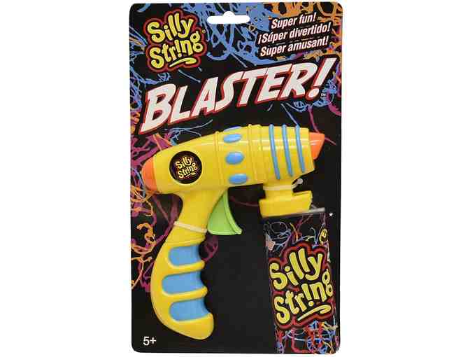 Have a blast with SILLY STRING Blaster. It turns any can of SILLY STRING Spray Streamer into an ammo cartridge of fun. Clip onto a can of shaken SILLY STRING Spray Streamer, pull the trigger, then giggle and laugh uncontrollably! Made of durable ABS plastic and sized to fit both big and small hands.