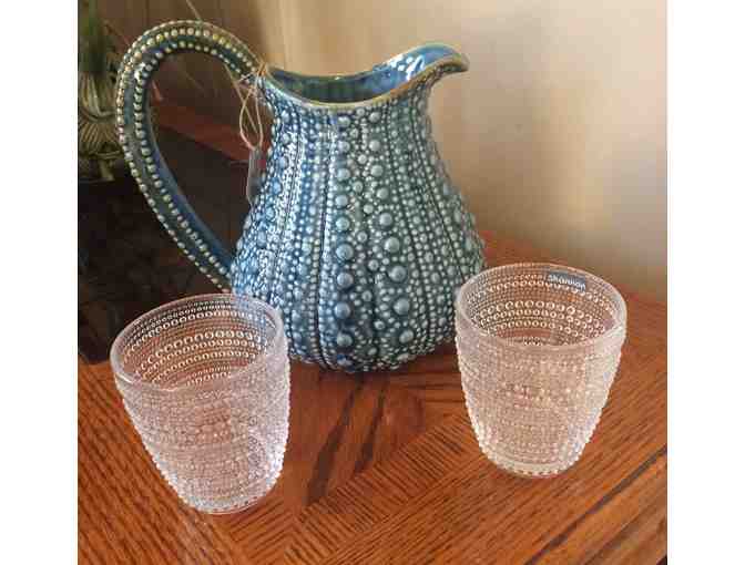 Ceramic Jar with a set of 4 Crystal fashioned glasses.