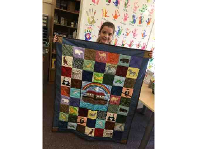 Beautiful and colorful Noah's Art Quilt handmade by One of a Kind Design.