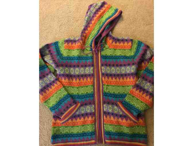Alpaca Peruvian zip up sweater with hood and pockets. Handmade by Peruvian artisans. Size: Medium