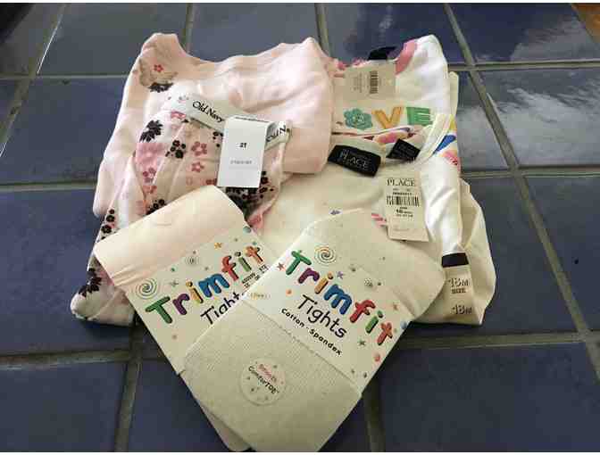 Do you have a niece or a friend having a baby girl? Here’s a few items you could give as a present - Old Navy pajamas (2T), Gap top (18-24m), Children’s Place top (18m) and two pairs of tights.