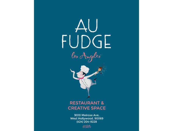 Calling all kids & kids at heart! Dine, Play and Celebrate with Au Fudge! This Gift Certificate entitles you to a $100 gift certificate, 2 complimentary admissions to our kids' creative space and a magical dessert from our pastry case.