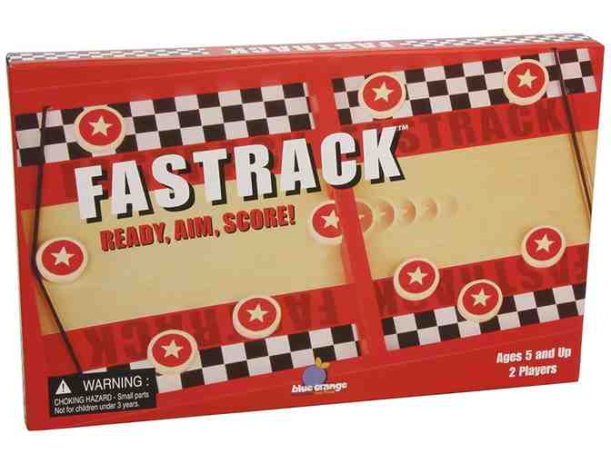 Fastrack is a high speed disc-flinging game powered by your finger! Use the elastic band to fire all of the discs through the tiny slot to the other side of the track. Aim carefully but act fast or you’ll be bombarded by your opponent’s zooming discs. Ride the fine line between speed and accuracy to win!