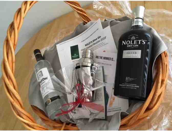 NOLET GIFT BASKET includes (1) SIGNED BOTTLE OF KETTLE ONE, (1) SIGNED BOTTLE OF NOLET'S SILVER GIN, (1) SHAKER, (2) MARTINI GLASSES & (1) RECIPELIST