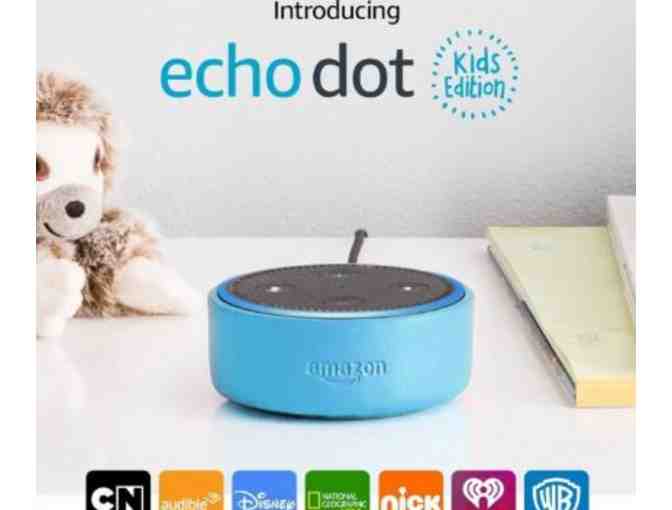 Introducing a hands-free, voice-controlled speaker with Alexa, designed with kids in mind. Echo Dot Kids Edition can play age-appropriate music, answer questions, tell stories, and more. Includes a black Echo Dot, a 1-year subscription to FreeTime Unlimited, a fun kid-friendly case, and a 2-year worry-free guarantee. If they break it, return it and well replace it for free. With the 1-year FreeTime Unlimited subscription, kids can access content theyll love, such as skills and music designed specifically for them. Parents can control time limits, set bedtimes, review activity, and more. With far-field voice recognition, Echo Dot Kids Edition can hear you from across the room, and only streams audio to the Alexa Voice Service when it recognizes the wake word Alexa.