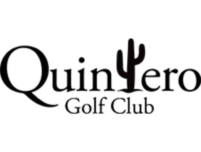 An 18-hole round of golf for four at Quintero Golf Club in Peoria, AZ. Carts are not included. Valid Sunday - Wednesday anytime, and Thursday - Saturday after 1:00 pm. Not valid January - March 2019. Certificate expires May 1, 2019. Visit https://www.quinterogolf.com/.