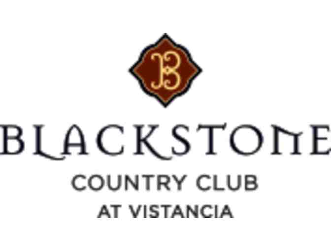 An 18-hole round of golf for four with carts and practice balls at Blackstone Country Club in Peoria, AZ. Also included is valet parking and locker room service. Golf appropriate attire is required. Tee times available most days after 11:00 a.m. The certificate is non-transferable, is not redeemable for cash and is void if sold or bartered. Certificate expires December 31, 2018. Visit http://vistancia.bigfishstage.com/blackstone-country-club/.