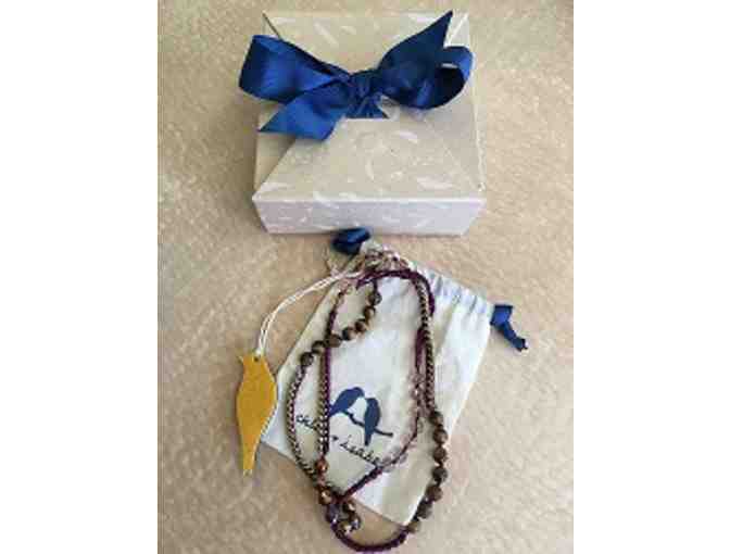 A beautiful Chloe & Isabel necklace(that can also be turned into a bracelet), a gift certificate for a 50-minute class massage at the Mirror Lake Inn Resort in Spa in Lake Plaicd, NY and a gift certificate The Cottage for lunch or 2.