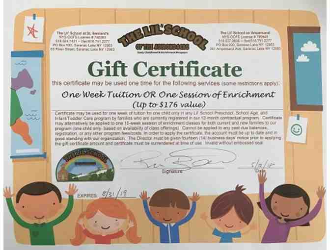 One Week Tuition or One Session of Enrichment at the The Lil' School of the Adirondacks.