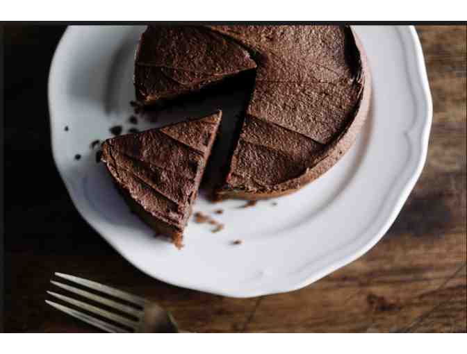 Homemade Flourless Chocolate Cake made especially for YOU! Can be made anytime you like and delivered to your home. Comes with cake plate! (See sample images attached).