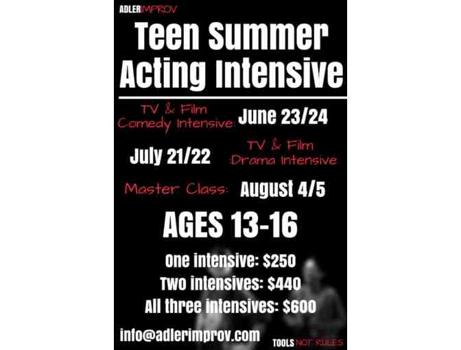 Receive a free class in one of our three summer workshops for young actors in LA! Renowned ADLERIMPROV ACTING STUDIO will inspire young actors to have fun, build confidence and fine tune skills through improvisation and on-camera practice. This class boasts actors on BIZZARDVARK, HEATHERS, FRESH OFF THE BOAT, ALEX INC, GREY'S ANATOMY, LUCIFER and more! Whether you are new to acting or working on set we will guide you to your artistic potential. Workshops will be held June 23 & 24th, July 21st & 22nd, August 4th & 5th in Hollywood. There is no commitment for the second day of the workshop, but you are free to schedule it ($125)!