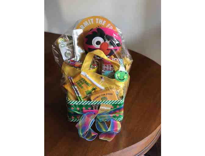 All new merchandise, hand-picked for next generation Muppet fans! Featuring a kid's stationery collection bought at Tokyo Disneyland - includes a nifty little ruler, Muppet pencils and case, a handy plastic cup, a Kermit mouse pad, and more! One unopened Vinylmations Mystery Muppet Box from Disneyland. And a cool Disney Store exclusive Animal Pook-A-Looz plush. Everything comes in this timeless Kermit lunch box!