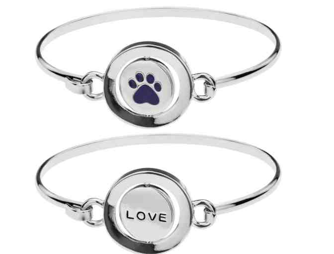 Your love for your furry friend is limitless! Show off your pride with a simple silver-tone bracelet, featuring a spinning pendant with a paw print on one side and the word "love" on the other.