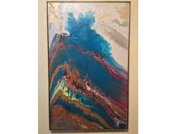 This is a large and very impressive painting: 35" x 56" x 1.5" Custom Framed; Free Shipping! I wish the pictures could do it justice for it is rich in color and movement, powerful and beautiful! It would be an incredible focal point in an office, studio or home!
