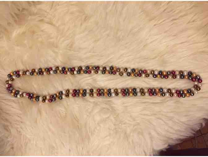 A beautiful 60 inch multi-colored fresh water pearls will make any Mom or young lady very happy. A single strand fresh water pearls. It would dress up any outfit!