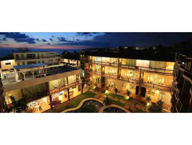 This laid-back boutique hotel is located on the gorgeous Playa Zicatela in Puerto Escondido, surrounded by fun retaurants, bars, and shops.