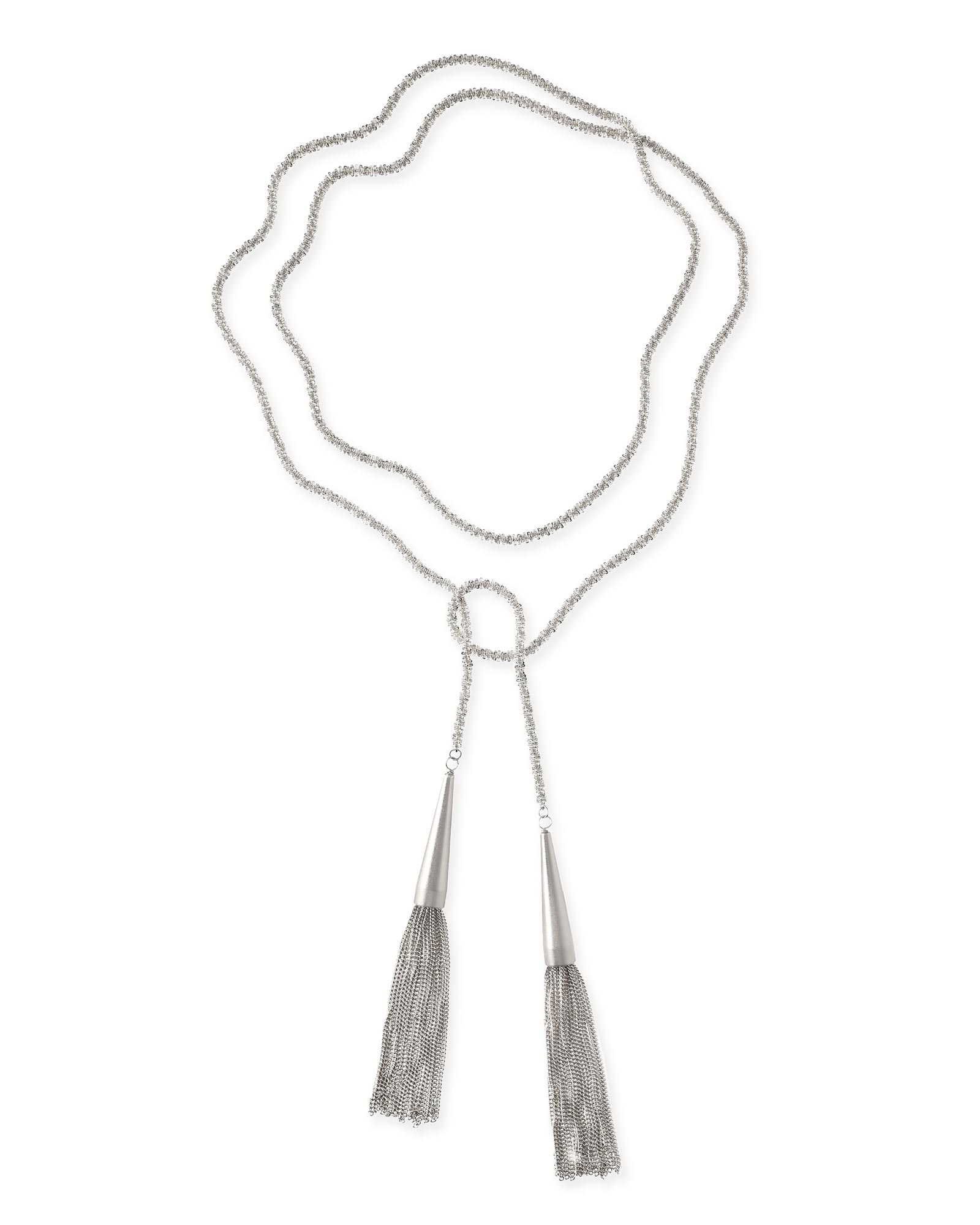 The Phara Necklace in Silver features fringe tassels and a long metallic chain, making it a versatile go-to whether it’s worn layered or on its own. With so many styling options, the Phara will become a staple in your jewelry wardrobe.