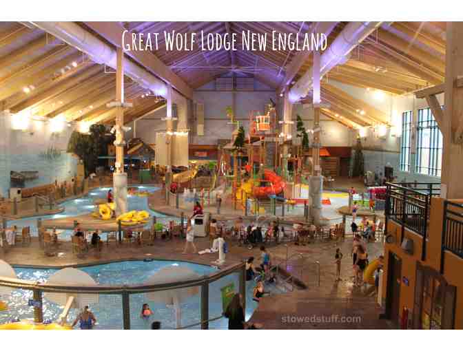 Great Wolf Lodge-New England is lcoated in Fitchburg, Mass. This gift certificate is redeemable for up to five waterpark passes. The certificate will expire one year after the event date and is not valid holidays, blackout periods, and special event weekends.