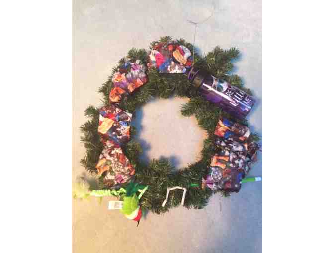 This lot features a Cat themed Holiday Wreath "decorated" with toys for the cats and a water bottle for their human!
