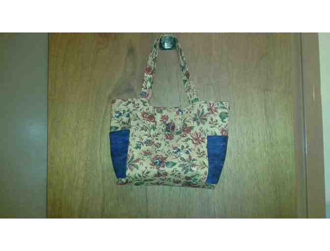 This lot features a handmade, quilted tote-style bag in a lovely floral pattern.