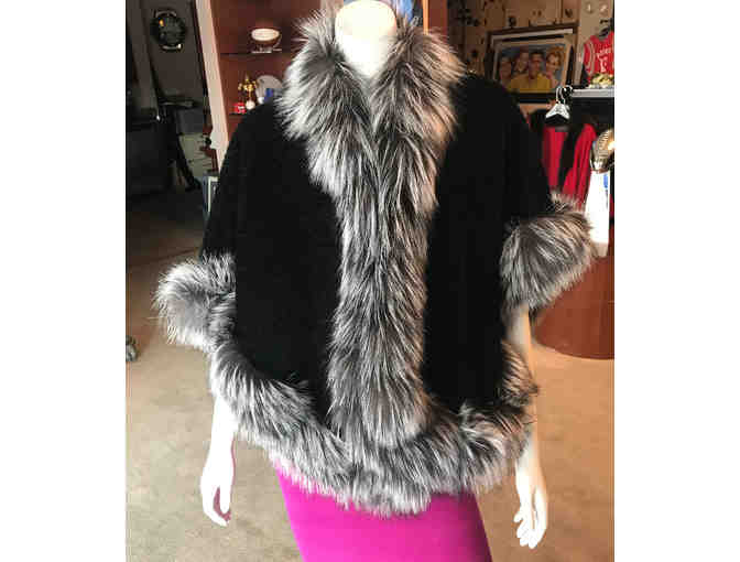 This black mohair evening cape from Edwards-Lowell of Beverly Hills is completely trimmed with silver fox.
