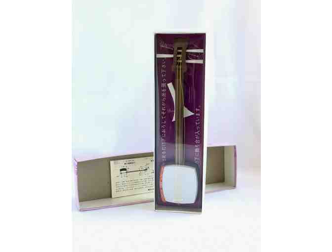 A shamisen is a traditional Japanese musical instrument with three strings. Plucked like a guitar or a banjo, the shamisen plays a very traditional sound. This mini shamisen can be for play or display. It is both sweet looking and sounding!