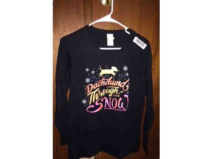 Dachshund Through The Snow in this cute long-sleeved Cotton Shirt.