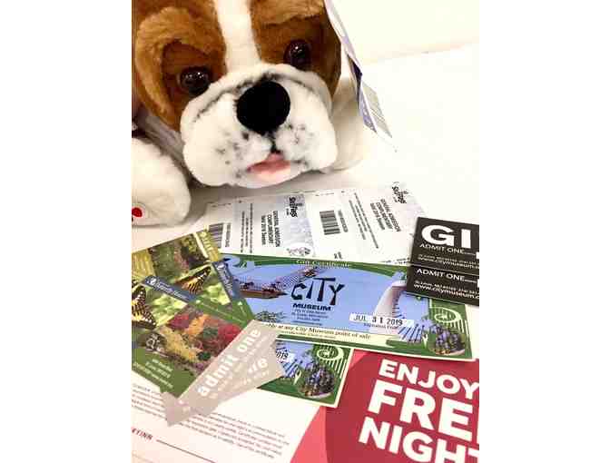 Entire Package Includes: 2 tickets to a select classical concert this upcoming season at the St. Louis Symphony, SLSO Logo Mug, Treble Clef Earrings, Two CDs/Recordings of the SLSO from this past season, 2 tickets to Six Flags St. Louis, 2 tickets to the Missouri Botanical Garden, a 2-night stay at any St. Louis Drury Hotel, 2 Safari Passes for the St. Louis Zoo, 1 Build-a-Bear Dog, a book about St. Louis Secrets, and 2 tickets to City Museum