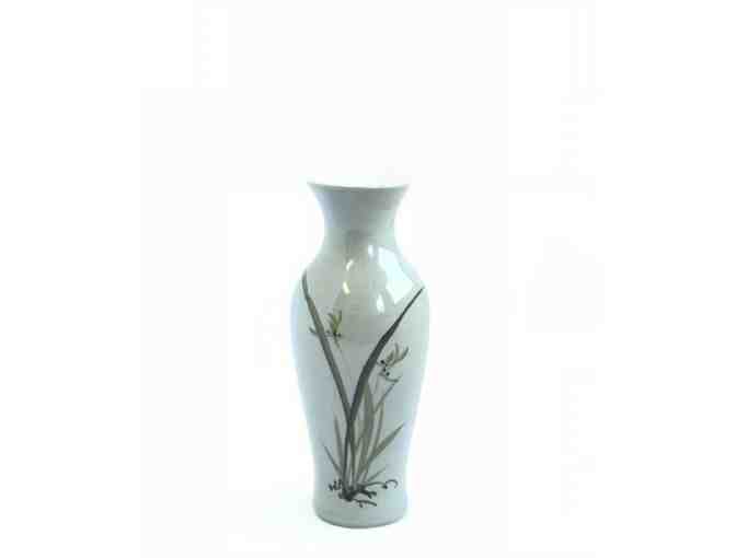 Another great Japanese ceramic vase for the home! Here is a beautifully painted grey vase that is elegant and perfect for a tabletop or desk.