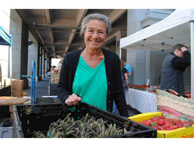 This exclusive package includes a Ferry Plaza Farmers market tour with Founder Patricia Unterman for four including breakfast at the Hayes Street Grill booth at the Market. For over 25 years, Patty Unterman has operated the Ferry Plaza Farmers Market stand through many changing times. She has been in the Bay Area organic farming scene for the quarter of the century she's been in business and has revolutionized the food scene of San Francisco. Boasting a long and perpetual line, the Hayes Street Grill is a must-eat place for many locals and non-locals. With your special tour, you have exclusive access to pick the brilliant brain of a food entrepreneur and then enjoy a delicious meal made fresh with local and organic ingredients. What a treat!