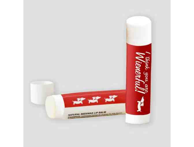 1 tube of "I think you are wienerful!" lip balm made from natural beeswax.