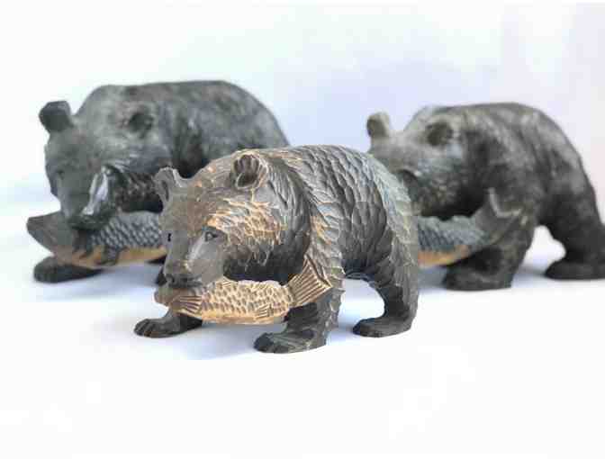 Three (3) Collectible Ainu Wooden Carved Bear and Salmon