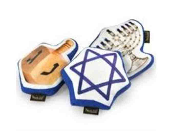 Celebrate the Festival of Lights with Hanukkah dog toys.